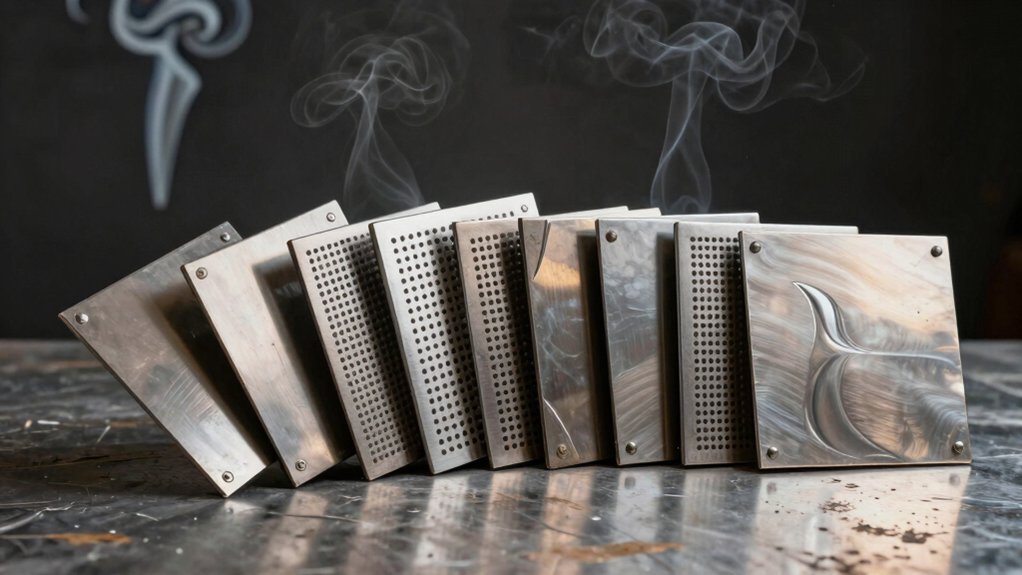 Three critical material properties determine whether your baffle plate will perform reliably over years of smoking: durability, heat resistance, and structural integrity. You’ll want materials like heavy-duty stainless steel or ceramic fiber alternatives that withstand temperatures up to 2100°F without warping or degrading. Thicker steel gauges provide superior strength and resist deformation better than thinner options, ensuring consistent heat distribution during extended cooking sessions.