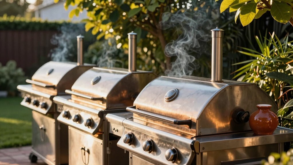 Consider your gathering size too. Electric grills suit smaller groups, while charcoal and gas models accommodate larger quantities and diverse cooking methods. Your fuel choice ultimately determines whether you prioritize authentic flavor, convenience, or cooking capacity.