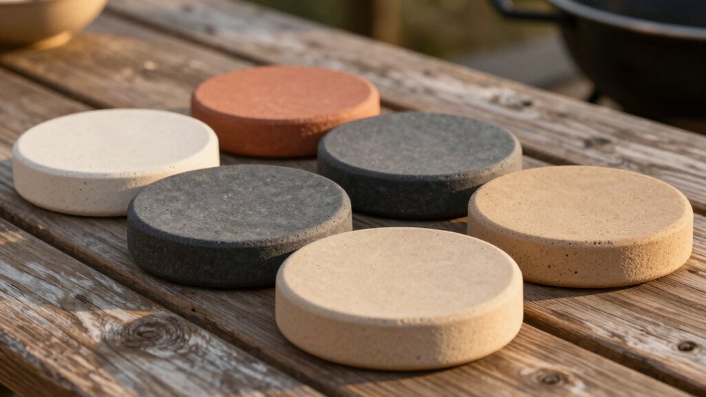 You’ll also consider thickness carefully. Stones ranging from 0.4″ to 0.63″ are standard, though thicker options retain heat more effectively—they just need longer preheating. Weight matters too; lightweight stones around 1.88 kg are easier to handle, while heavier ones up to 3.98 kg provide superior thermal stability.