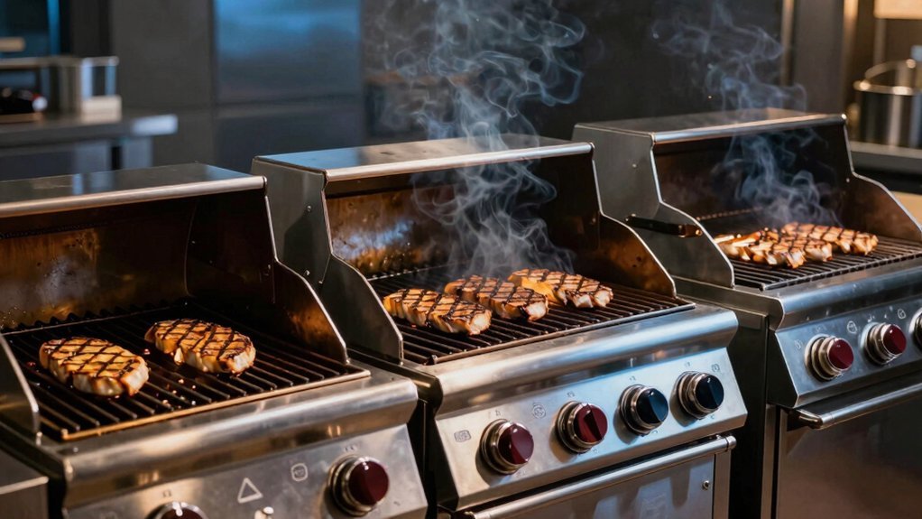 Picture the satisfying sizzle as your steak hits hot cast iron grates, searing to a perfect crust. You’re hunting for a gas grill that delivers consistent, restaurant-quality results every time. Porcelain-enameled grates promise durability and superior heat retention, but which model truly performs? We’ll examine three standout options and reveal what matters most when you’re making your choice.