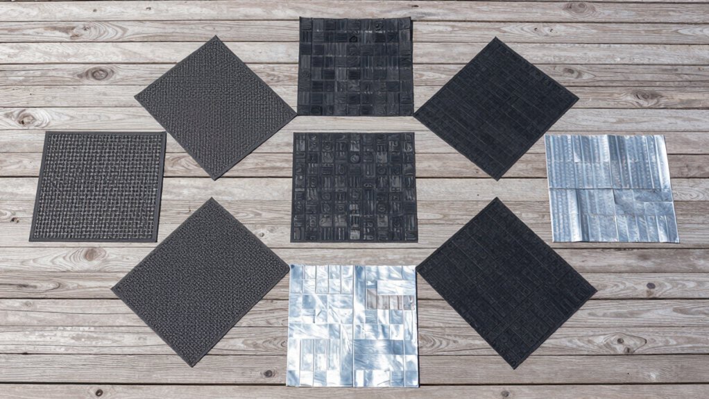 Pay close attention to stitching quality. Finely stitched edges prevent cracking and maintain structural integrity under extreme heat. Finally, prioritize mats that’ve undergone extensive lab testing. This assurance guarantees the material will withstand outdoor conditions and protect your deck reliably for years.