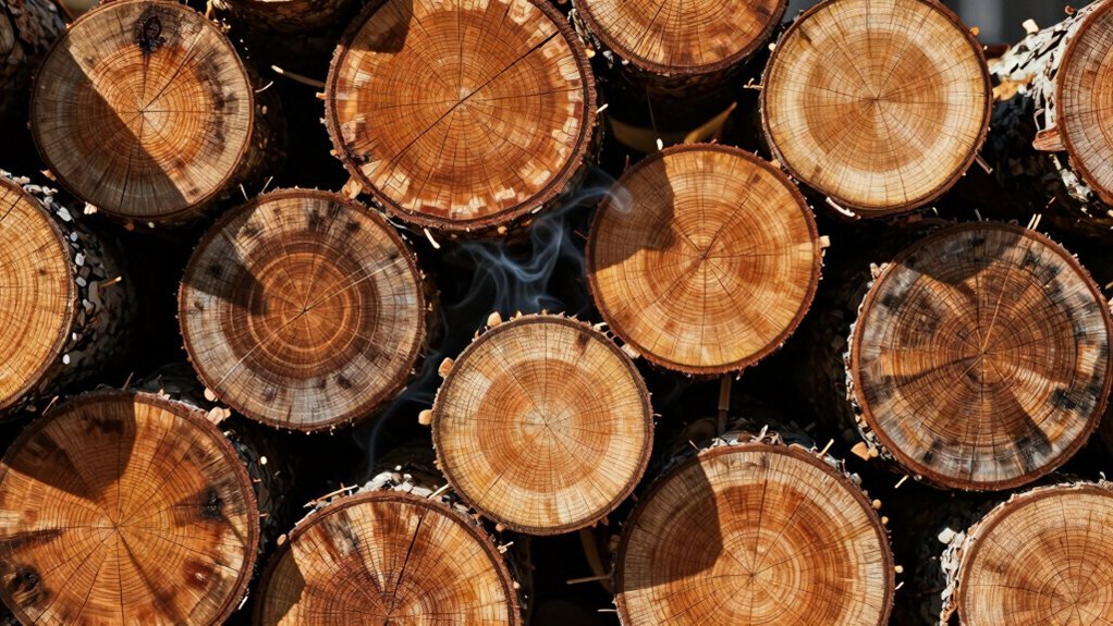 The wood’s density directly correlates with burn consistency. Choose premium-grade hickory to achieve the perfect smoke-to-flavor ratio that enhances your meats and vegetables. Proper burn characteristics guarantee you’re not constantly adjusting temperatures or adding wood throughout your cook.