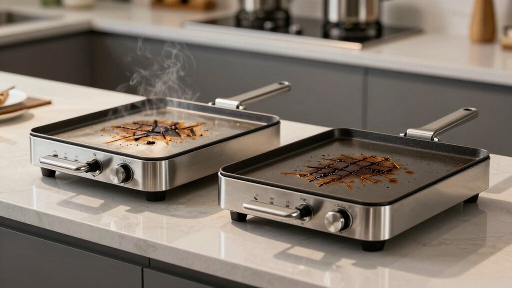 You’ve probably wondered if you can truly replicate that smoky, charred flavor indoors without sacrificing your kitchen. The truth is you can—but you’ll need to choose wisely. Two griddles stand out from the rest, each offering distinct advantages that’ll transform how you cook. The question isn’t which one exists, but which one’s right for your needs.