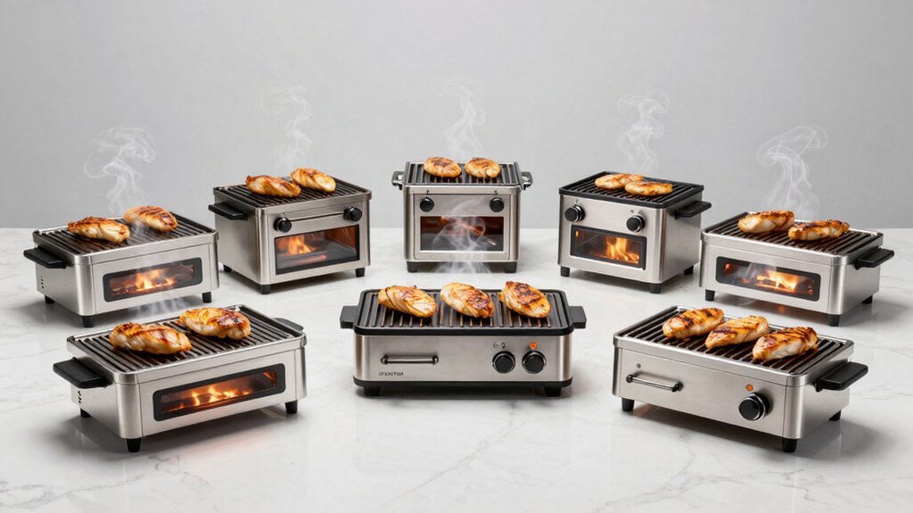 You’ve probably struggled with unevenly cooked chicken on indoor grills before. Dry edges, undercooked centers, and inconsistent results aren’t inevitable. The right grill transforms your cooking, delivering restaurant-quality chicken with minimal effort. We’ve tested seven models that truly deliver. Each one tackles common problems differently, and your needs will determine which one’s best for your kitchen.