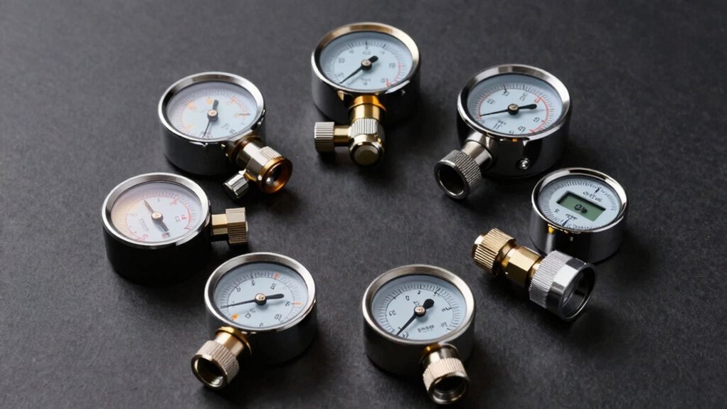 Accurate pressure readings depend on your gauge’s ability to maintain consistency despite temperature fluctuations and environmental stress. You’ll want to prioritize gauges with high-quality brass construction, which delivers durability and reliable performance across varying weather conditions.